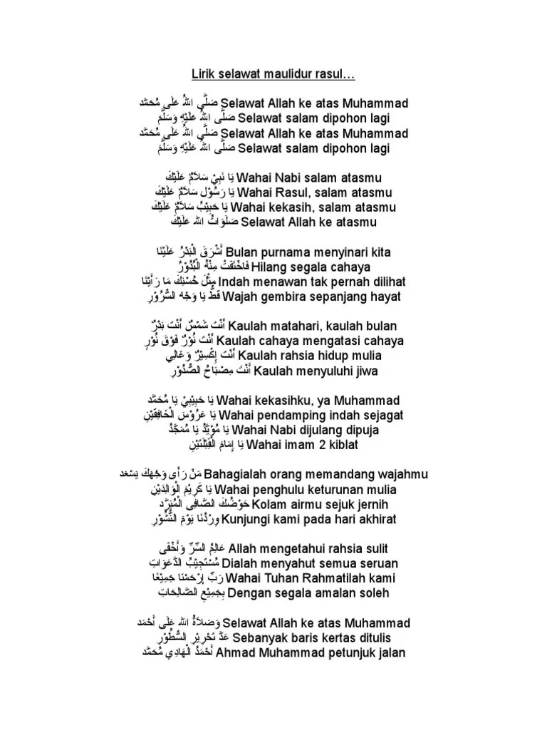 Panduan teks selawat maulidur rasul oleh jakim versi rumi jawi boleh print pdf. Layaknya sholawat pada umumnya, lirik sholawat . Cover & lirik ( selawat nabi 2021 ) salam maulidur rasul 1443 h / 2021 m ۞ اَللهُمَّ صَلِّ عَلَى سَيِّدِنَا مُحَمَّدٍ وَعَلَى آلِ سَيِّدِنَا. Ya rasul salamun 'alaika ; Selawat dan salam ke atas junjungan besar kita, nabi muhammad salallahualaihi wassalam. Tok mudin teks selawat maulidur rasul ibu lirik cute766 .